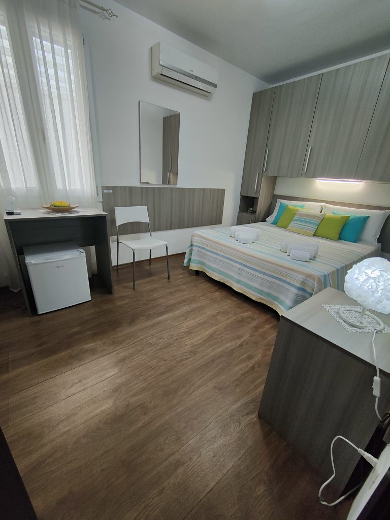 Le camere possono essere configurate con letto singolo, con doppio letto singolo o letto matrimoniale, per venire incontro a qualsiasi richiesta dei nostri ospiti. Ogni camera dispone di climatizzatore, mini-frigo con freezer, TV led e connessione WI-FI gratuita.